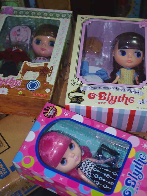 今天接的3个妞,超想要的裁缝姑娘终于回家了,还有七月的新妞。最最大的惊喜是有BLYTHE之母Junko Wong亲笔签名的会场限定伦敦妞。兴奋激动ing。